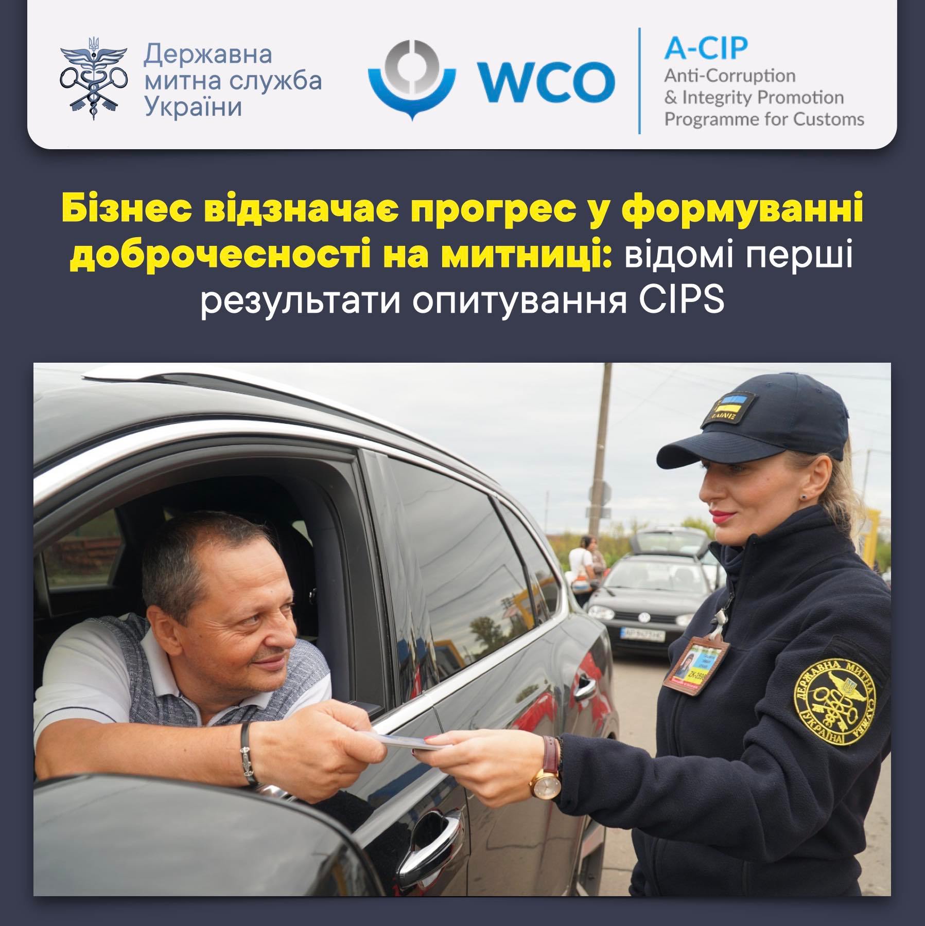 Всесвітня митна організація (WCO) у рамках Програми з протидії корупції та сприяння доброчесності у митній сфері (A-CIP) передала Державній митній службі України проміжні результати другого онлайн-опитування “Оцінка сприйняття доброчесності в митній службі України” (CIPS).