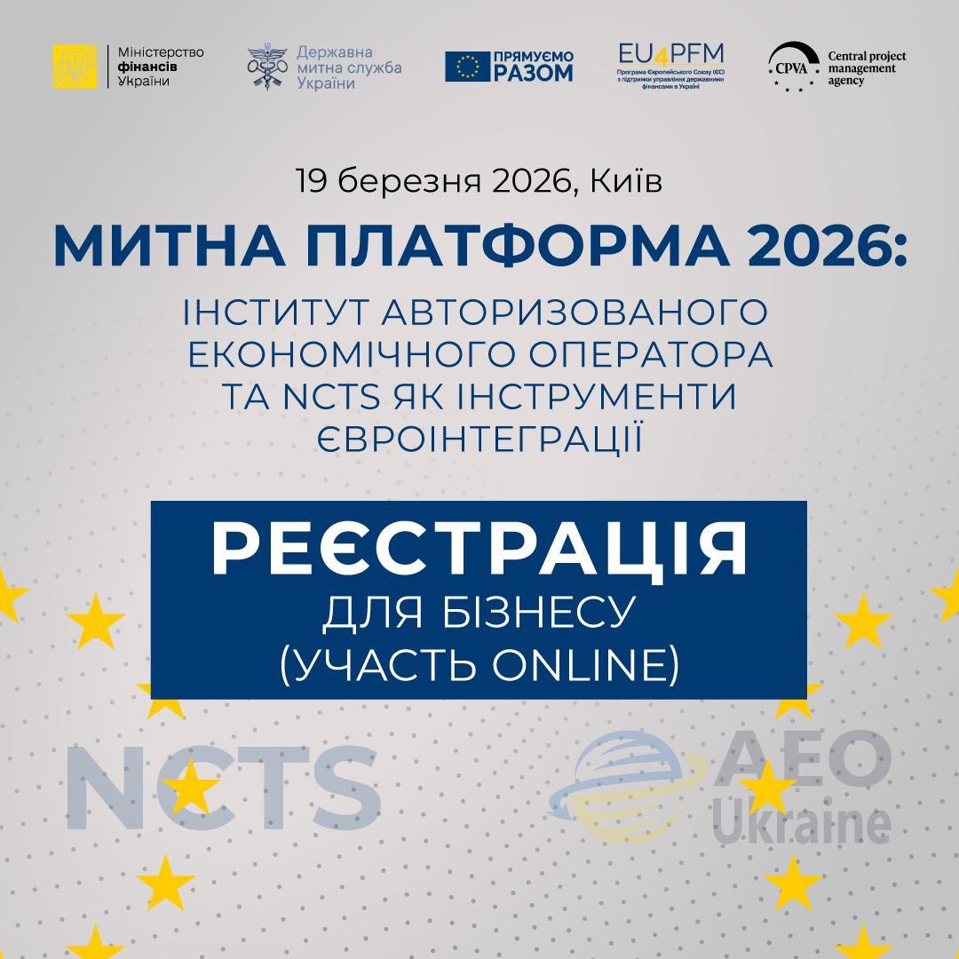 Запрошуємо бізнес та експертів до онлайн-участі у заході: «Митна платформа 2026. Інститут Авторизованого економічного оператора та NCTS як інструменти євроінтеграції»