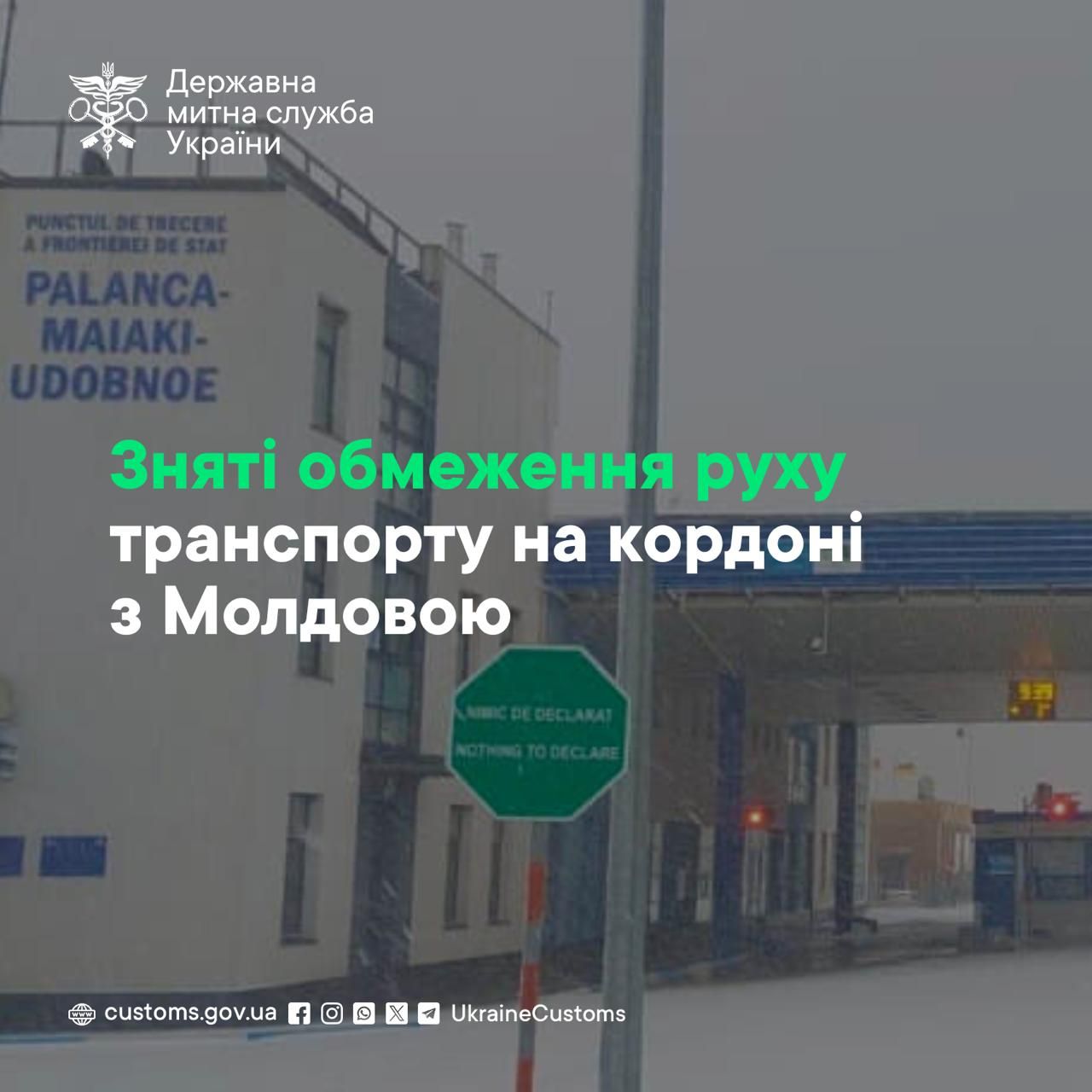 Рух до та з пунктів пропуску «Паланка-Маяки-Удобне», «Старокозаче», «Серпневе», «Малоярославець», «Лісне», «Рені», «Долинське», «Орлівка», «Виноградівка», «Табаки», «Нові Трояни» для зазначеної категорії транспортних засобів відновлено.