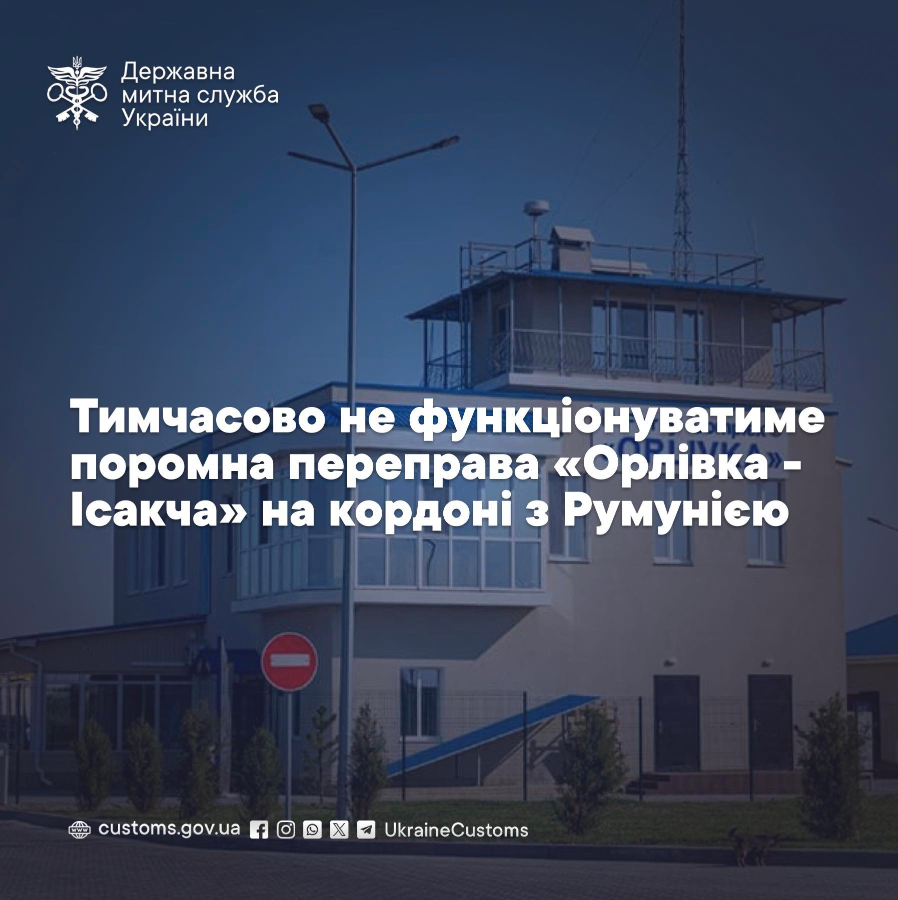 За інформацією румунської сторони, завтра, 17 квітня, у міжнародному пункті пропуску «Ісакча» заплановано технічне обслуговування гідротехнічної споруди.