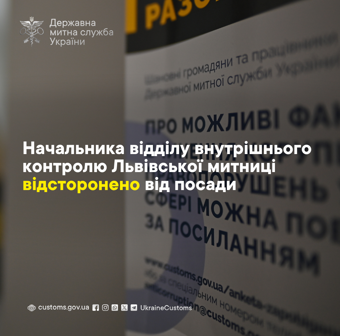Начальника відділу внутрішнього контролю Львівської митниці відсторонено від посади
