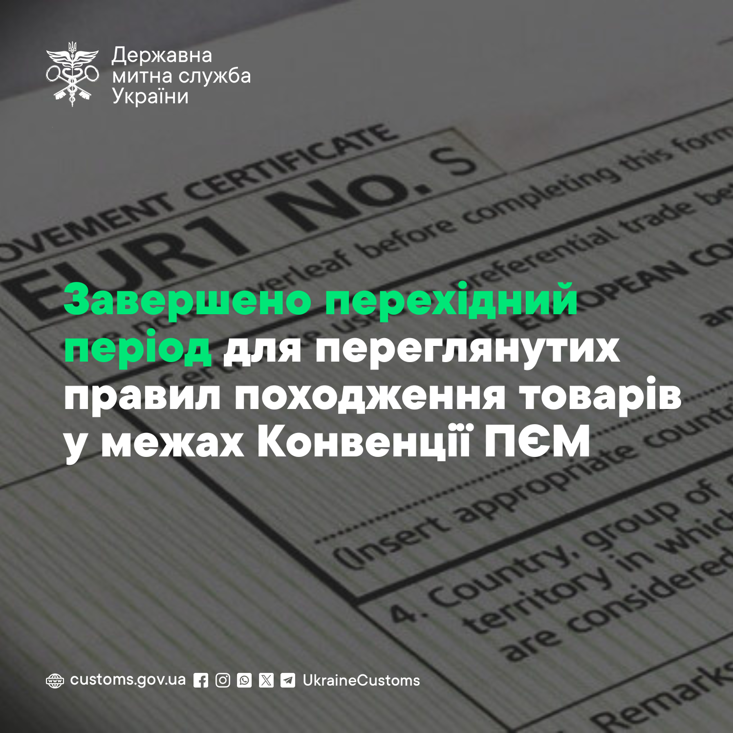 Завершено перехідний період для переглянутих правил походження товарів у межах Конвенції ПЄМ